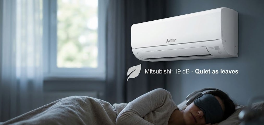 The gap exists, and it’s real. For most homeowners in a living room or hallway install, both brands run below the threshold most homeowners notice in daily use. Where the difference shows up is in dedicated quiet spaces: a light sleeper’s bedroom, a nursery, a home recording setup. At 19 dB, the Mitsubishi FH series disappears into the background in a way that 32 dB units don’t quite manage.